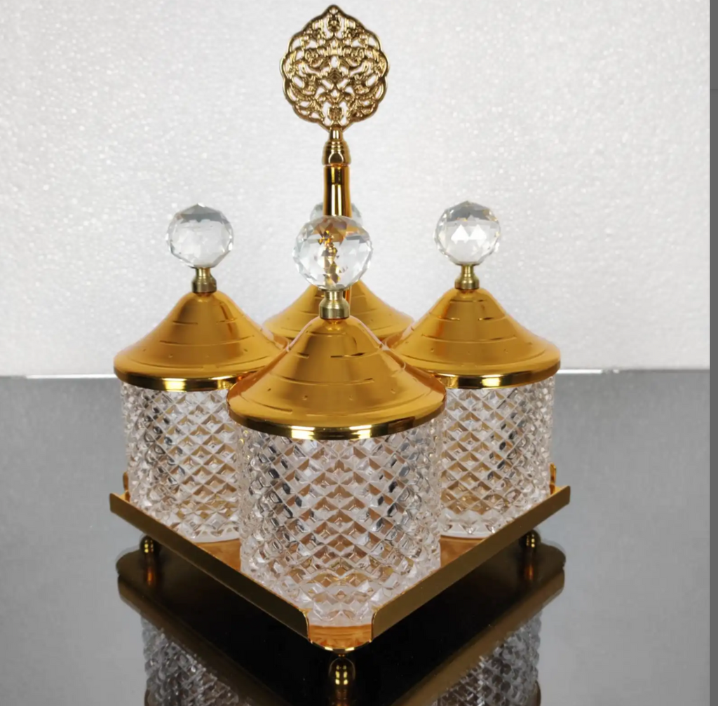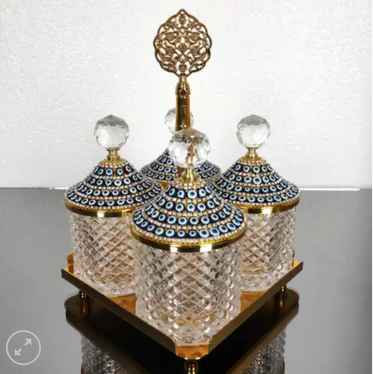 Evil Eye-Gold 4 Pcs Spices Hammered Canister with Stand Set