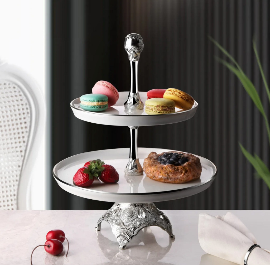 Silver and White Serving Tier