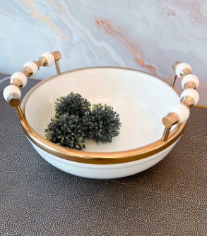 Gold and White Round Bowl with Beaded Handles