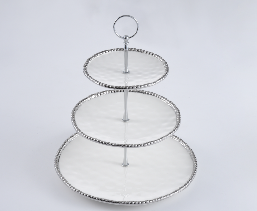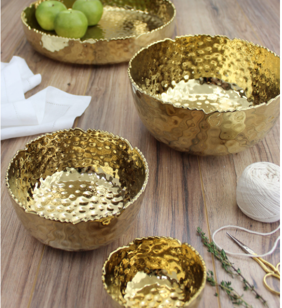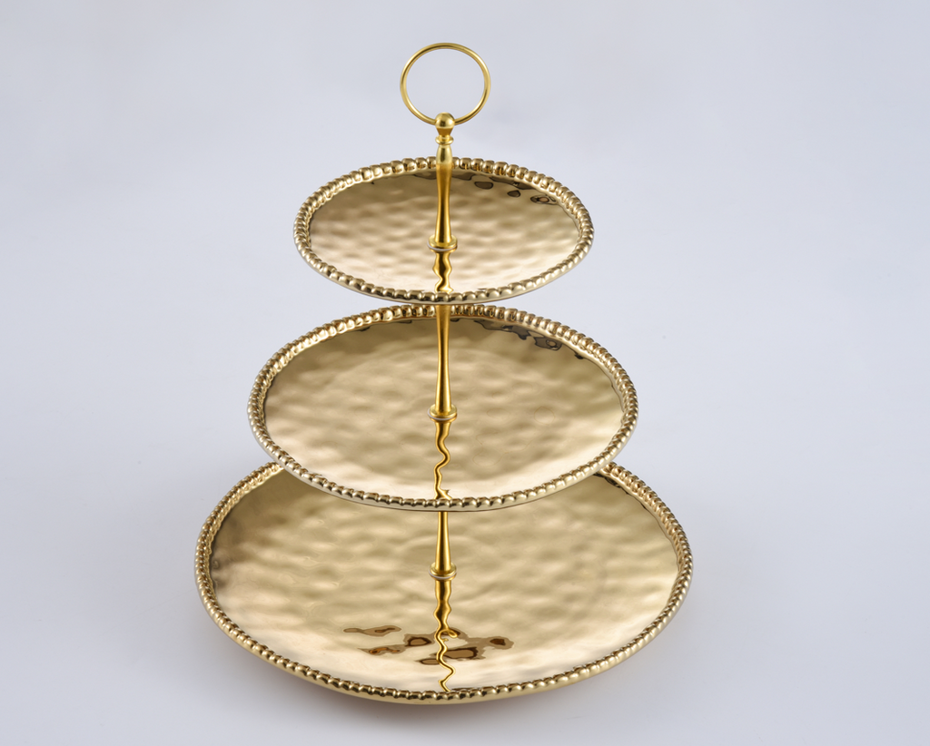 Gold Floral Hammered Canister Set With Stand (3 Pieces)