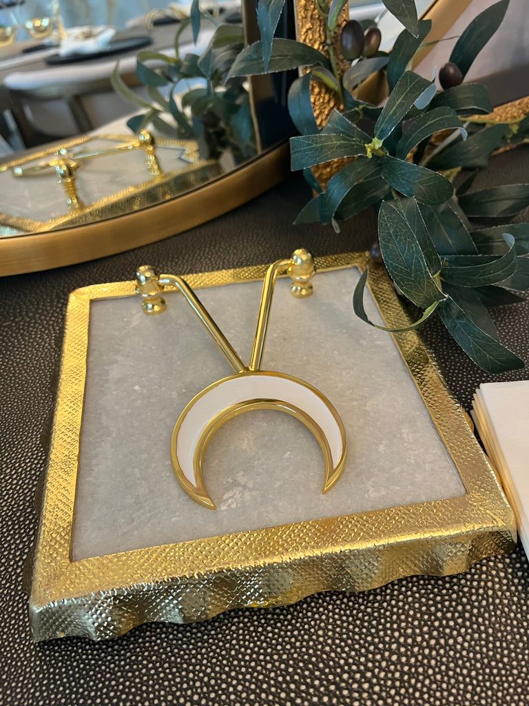 Gold Ripple and Marble Napkin Holder Moon Details (Ramadan/Eid)