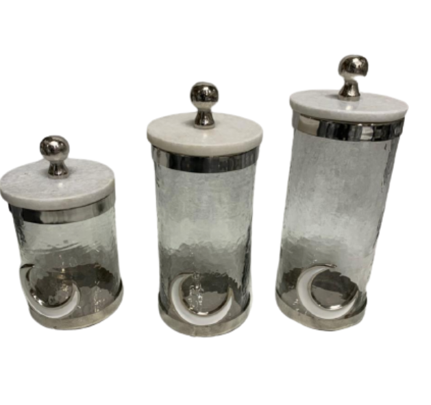 Ramadan/Eid Moon Marble and Silver Canisters (Set of 3)