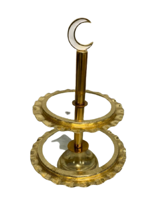 Two Tiered Cake Stand with Ripple Edge with Moon Details (Ramadan/Moon) (2 Color)