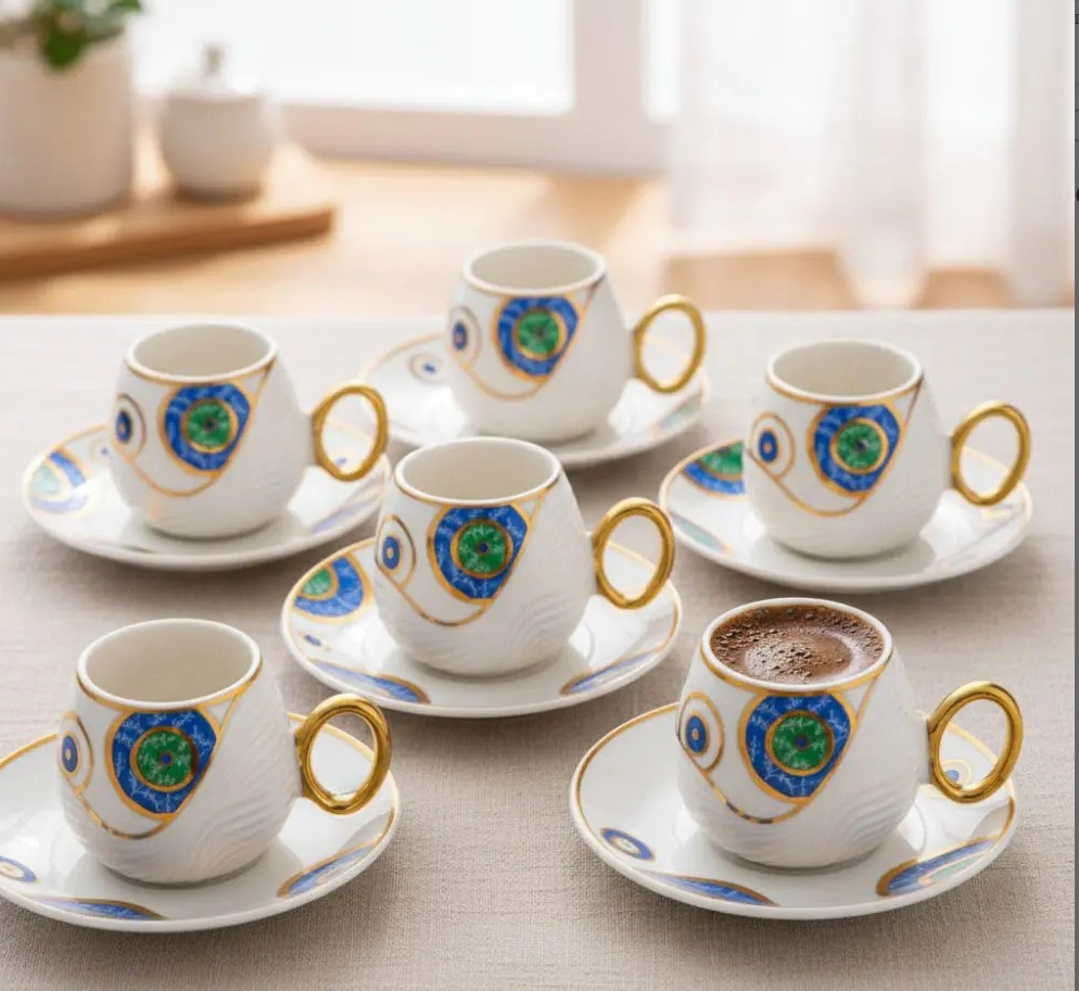 Evil Eye Bead Coffee Cup Set for 6