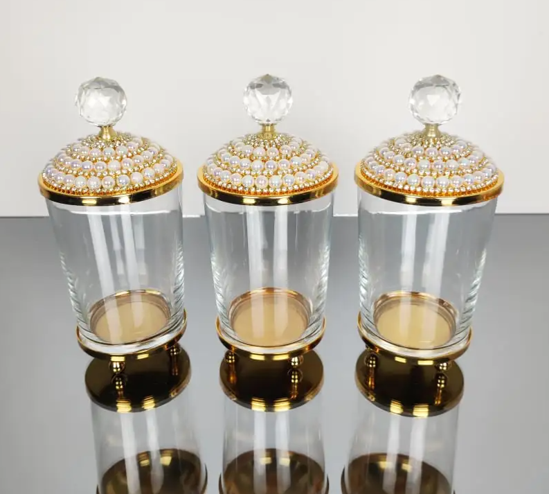 Pearl Gold Canister with Acrylic Ball Lid Sugar/Creamer Canister (Footed)