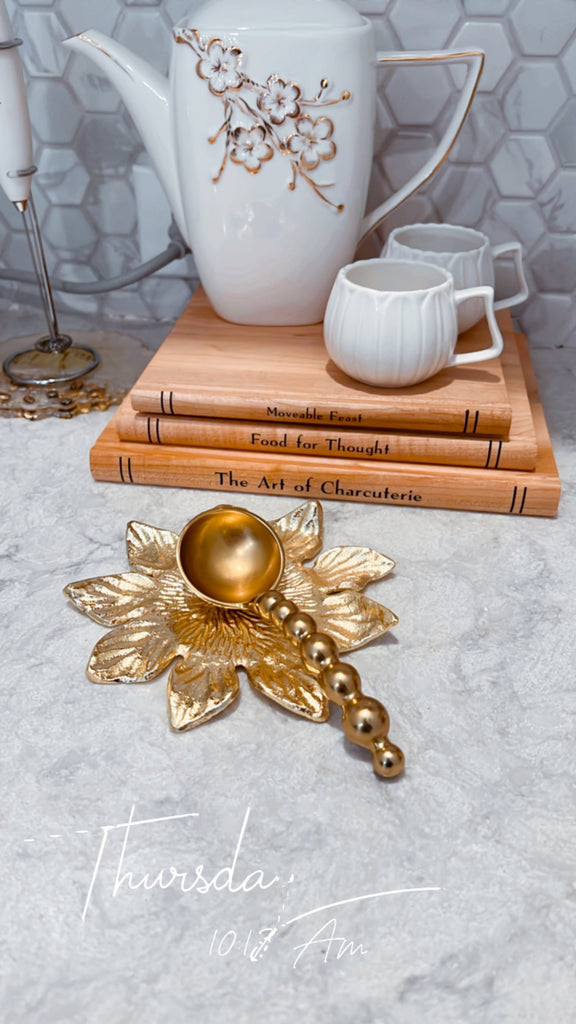 Gold Edge & White Marble Detailed Spoon Rest/Tea Light Holder
