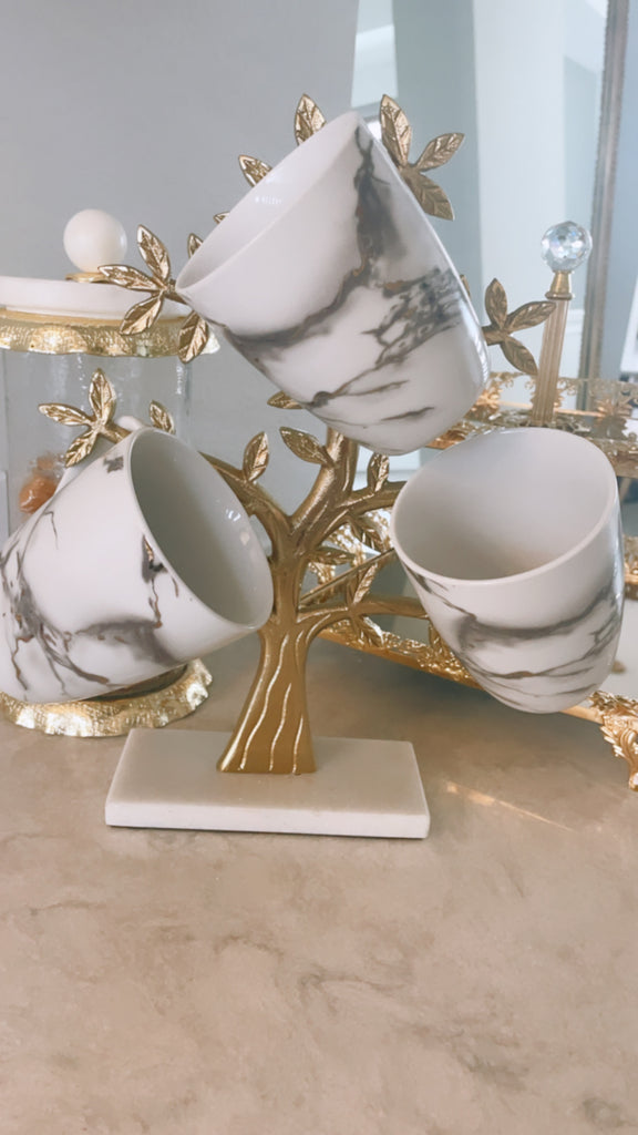 Gold METAL MUG/JEWELRY TREE w/ Marble Base