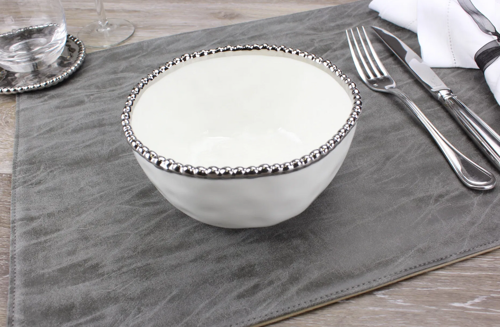 Silver and White Beaded Cereal / Soup Bowl