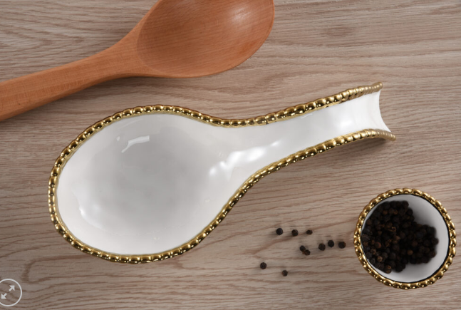 Gold and White Beaded Spoon Rest