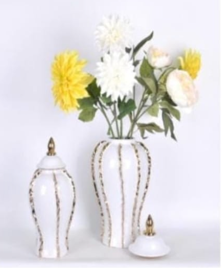 White and Gold Ginger Jar with Linear Details (2 Sizes)
