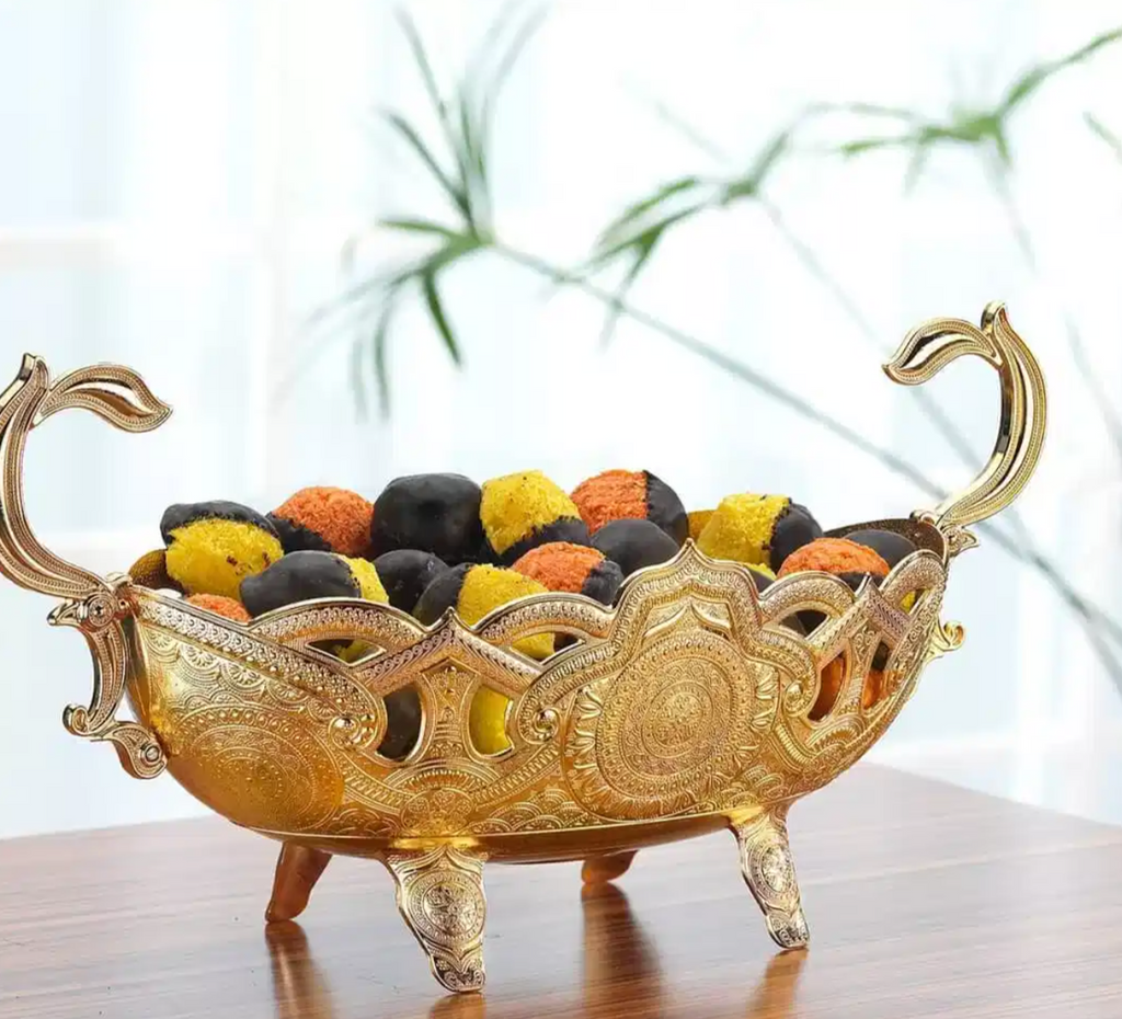 Gold Floral Canister Set With Metal Stand (3 PIECES)