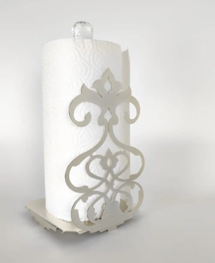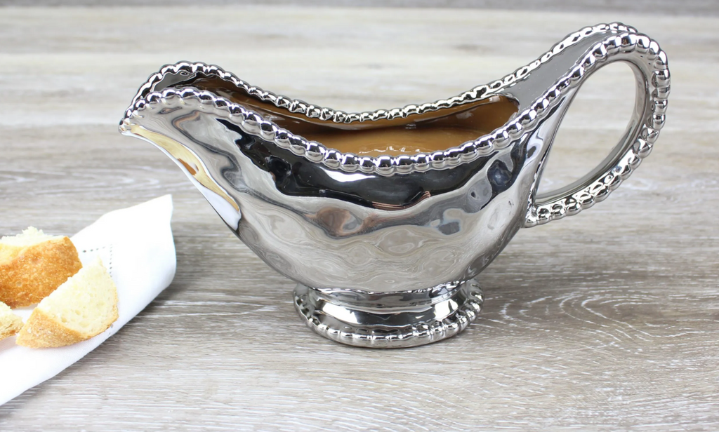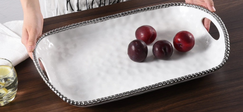 Silver and White Beaded Tray w/ Handle (Extra Large)