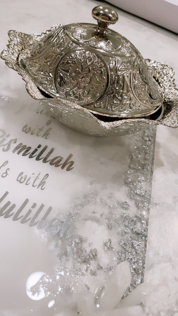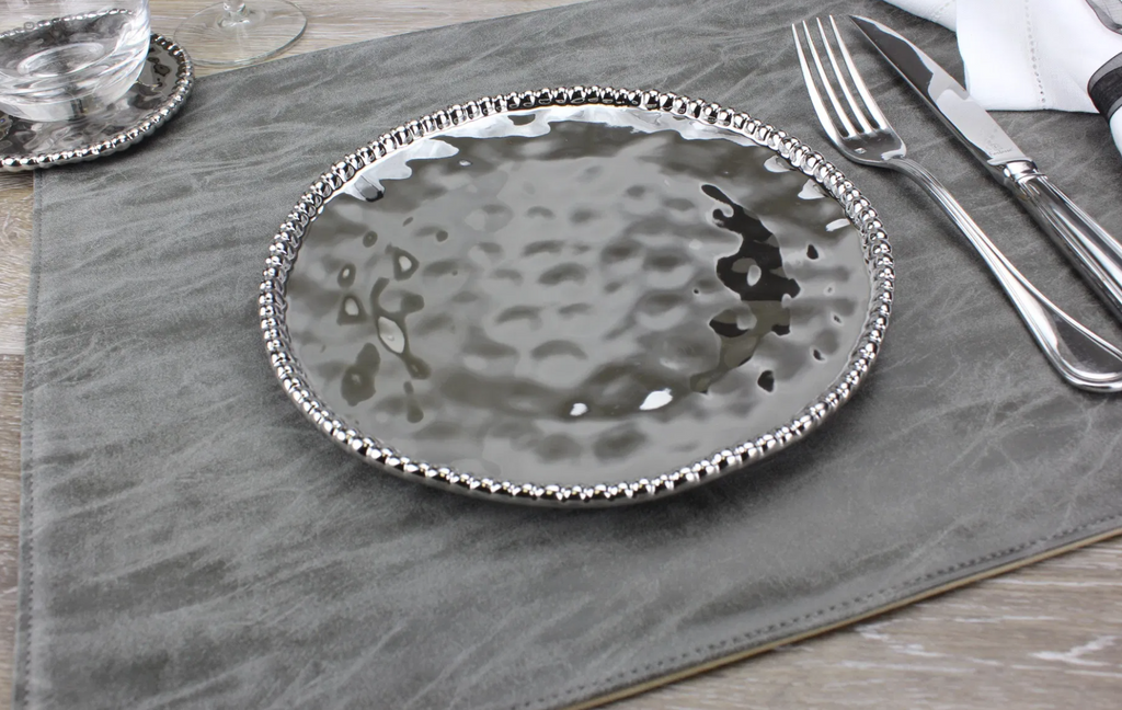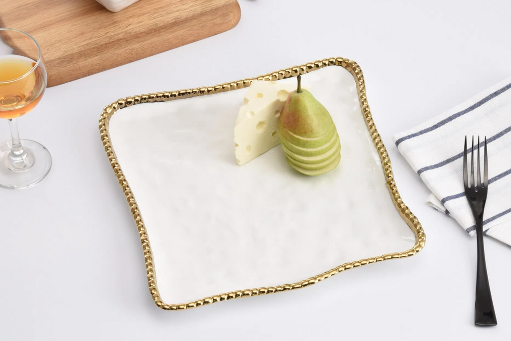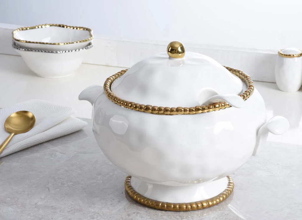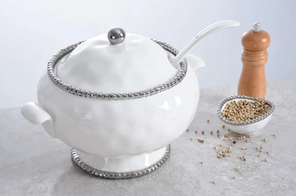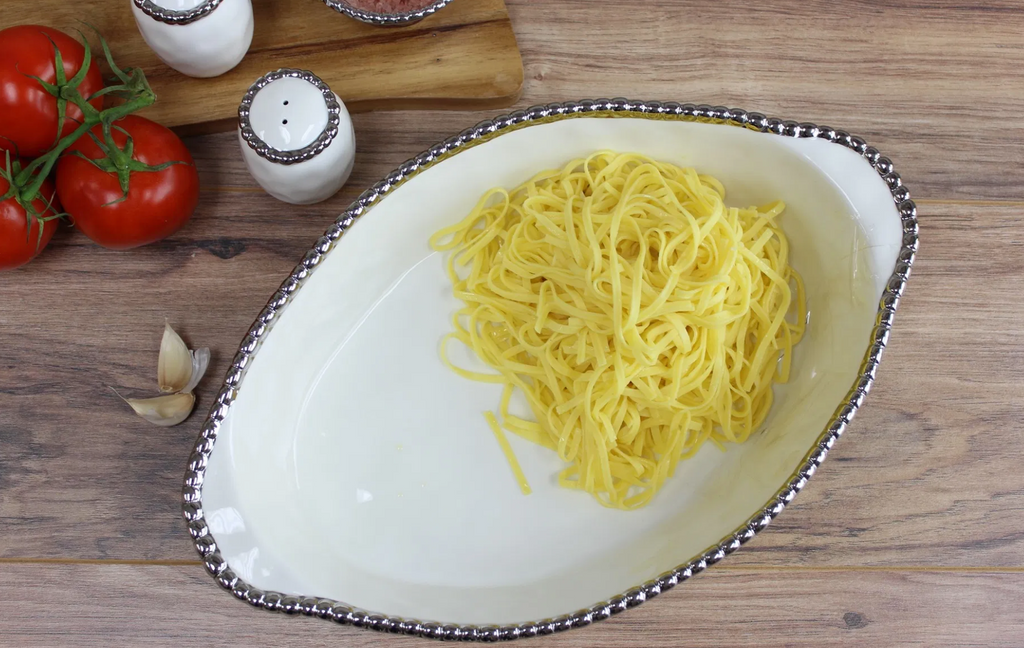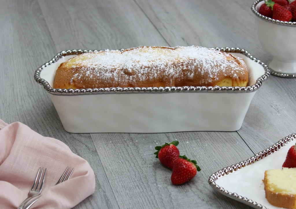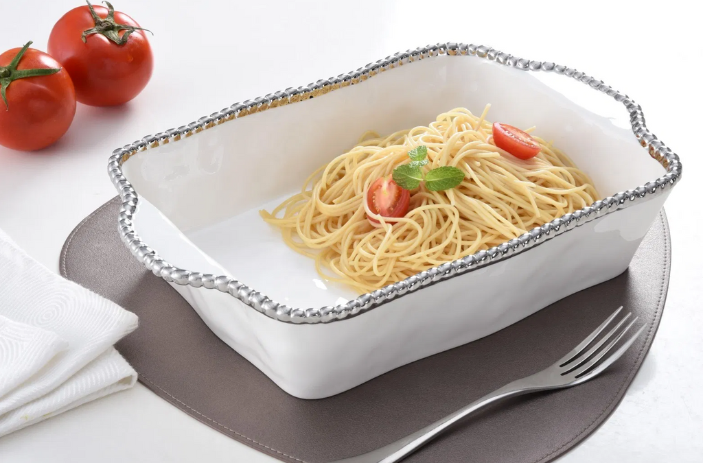 Silver and White Beaded Rectangular Baking/Serving Dish