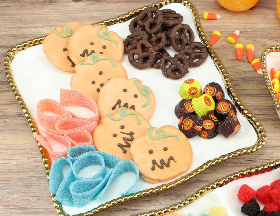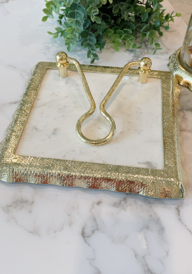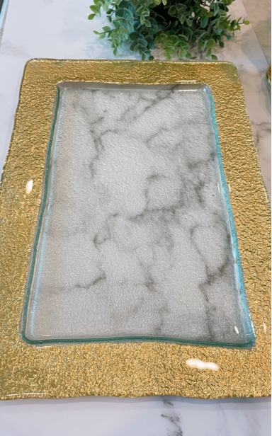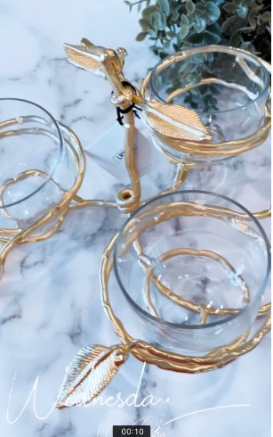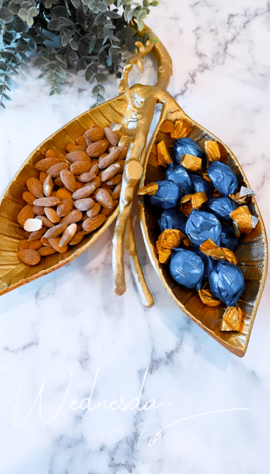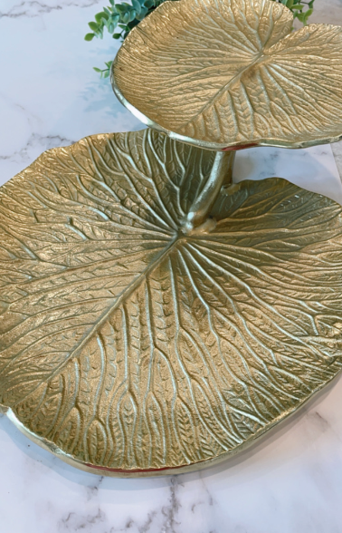 Gold Leaf 3 bowl Snack Dish with Glass Inserts