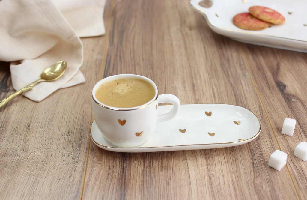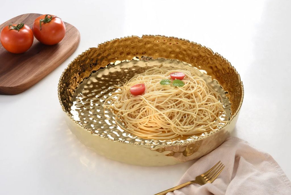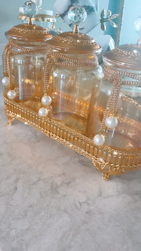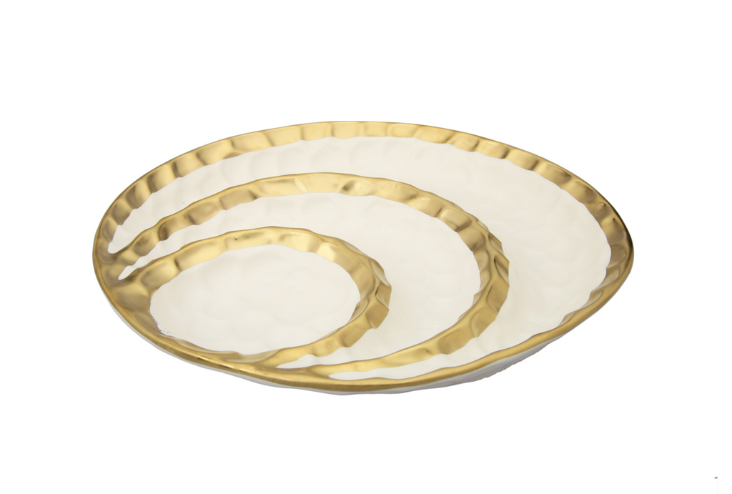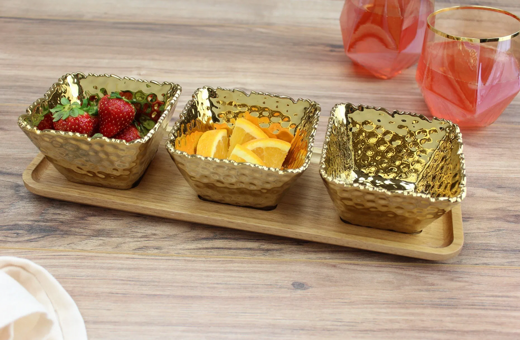 PORCELAIN Gold 3 Bowls with Wood Tray