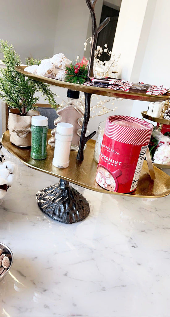 LARGE GOLD GLIDED 2-TIER TREE STAND