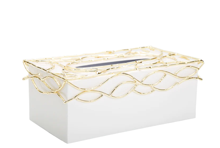 White and Gold Mesh Details Tissue Box