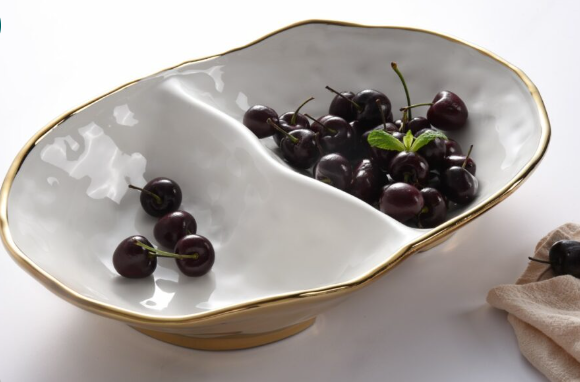 Gold and White 2 Section Serving Bowl