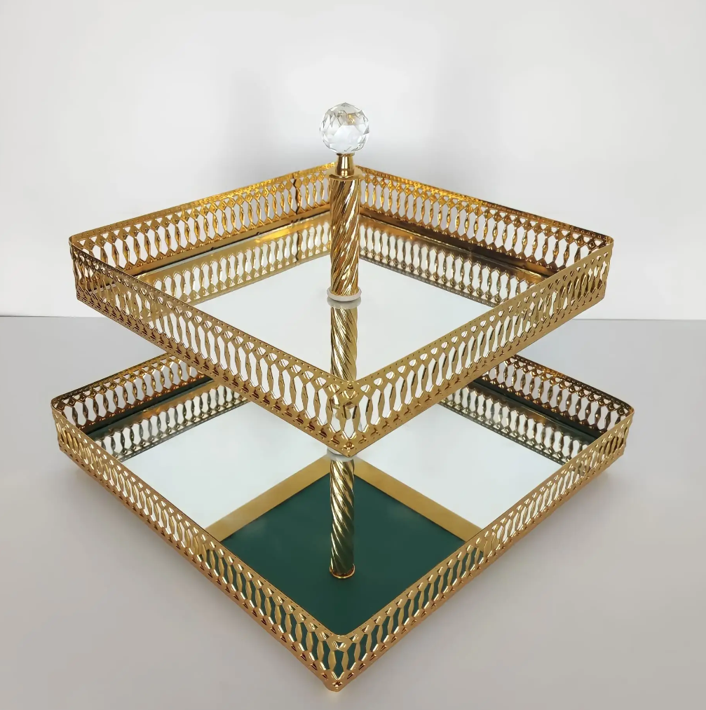 Extra Large Square Mirrored Tier Serving Stand (2 Colors)