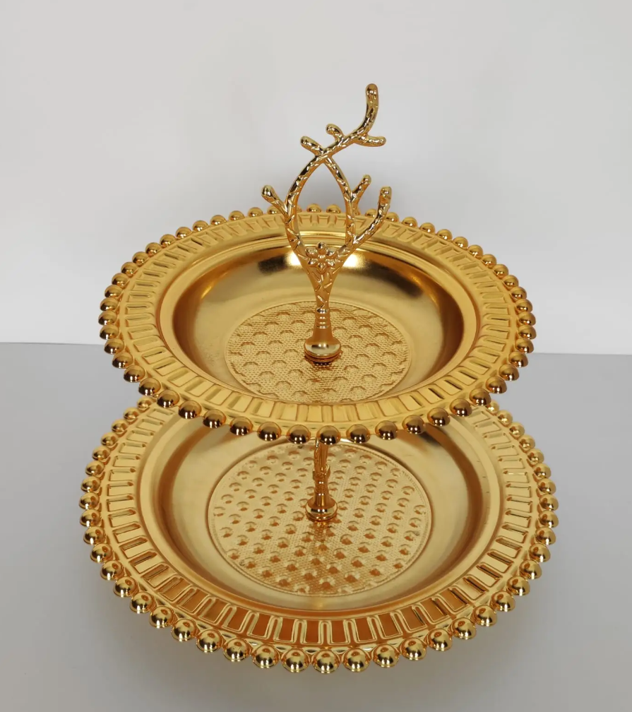 Gold 2-Tier Beaded Serving Branch Stand