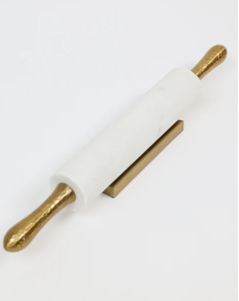 Marble Rolling Pin with Gold Hammered Handles