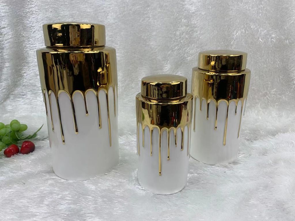White Porcelain Jar with Gold Dipped Detail and Lid (3 Sizes)