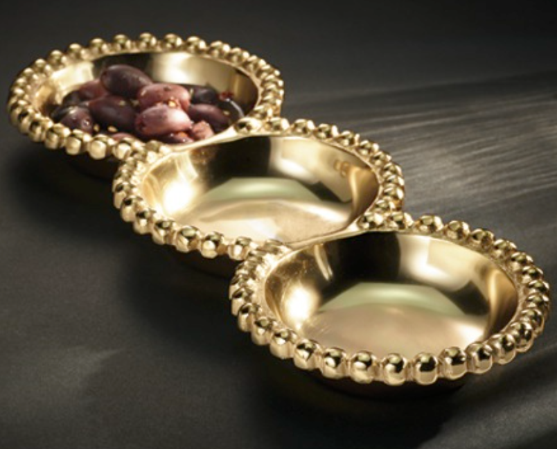 3 Sectional Glass Relish Dish on Marble Base with Gold Brass