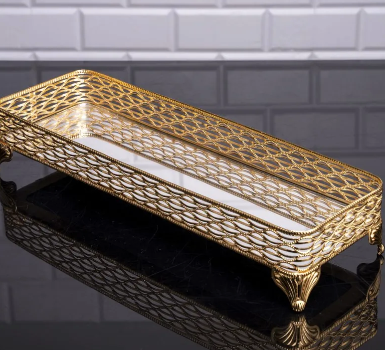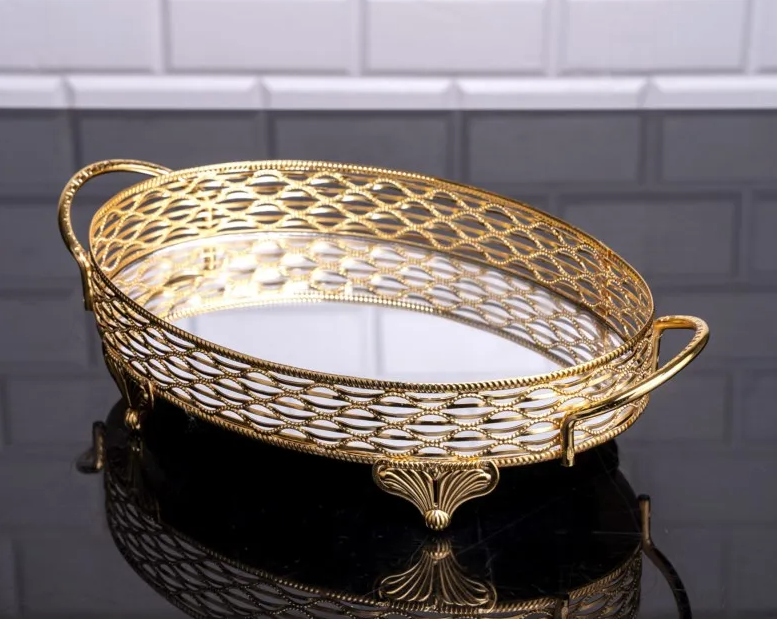 Gold Leaf Oval Shaped Bowl with Glass Insert