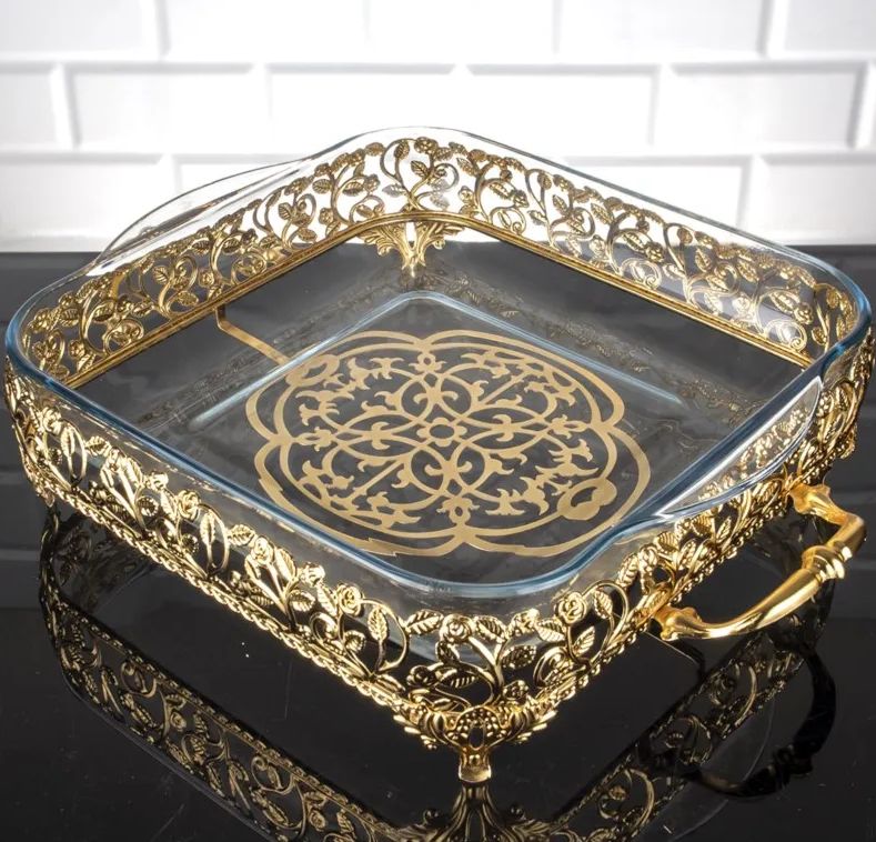 Square Glass Serveware with Metal Base and Handles (2 Colors)