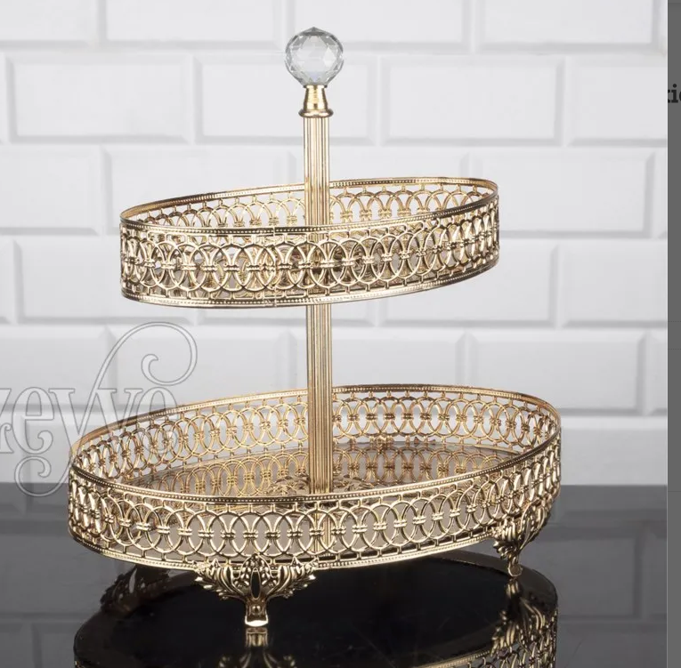 Two Tiered Cake Stand with Ripple Edge with Moon Details (Ramadan/Moon) (2 Color)