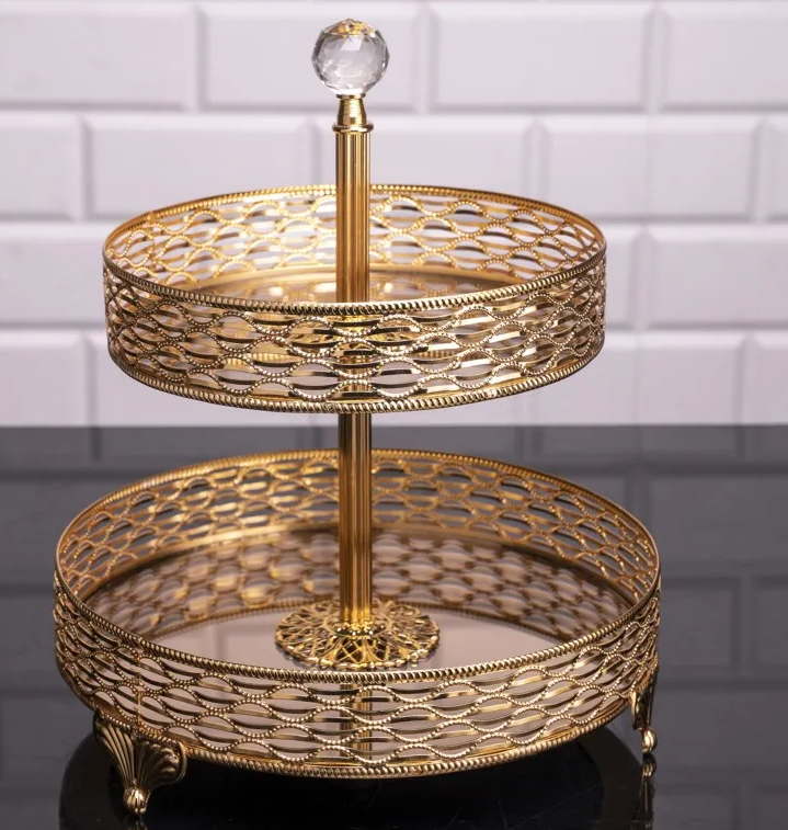 Two-Tiered Round Metal Serving Display with Acrylic Ball (2 Colors)