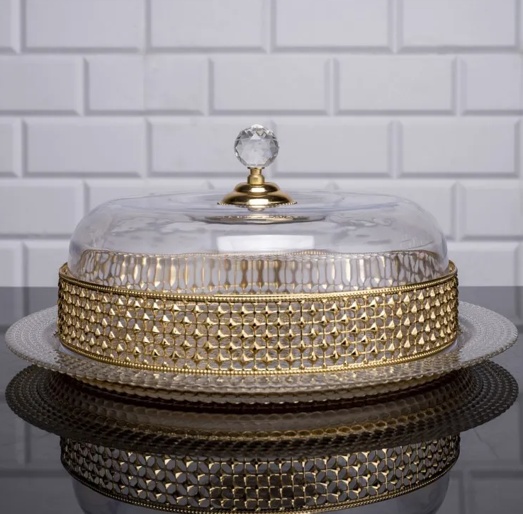 Gold Round Cake Dome with Acrylic Ball Lid Details