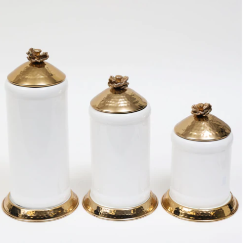 White Ceramic Jars with Gold Flower Lid (3 Sizes)
