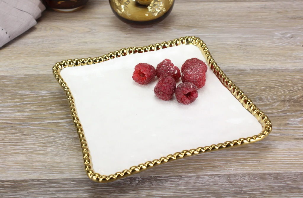 Silver and White Beaded Rectangular Baking/Serving Dish