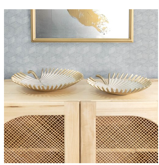PORCELAIN Gold 3 Bowls with Wood Tray