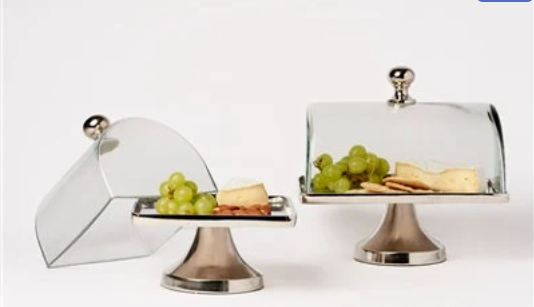 Silver and Glass Rectangular Cake Dome with Stand (2 Sizes)