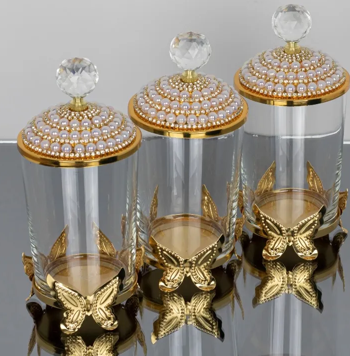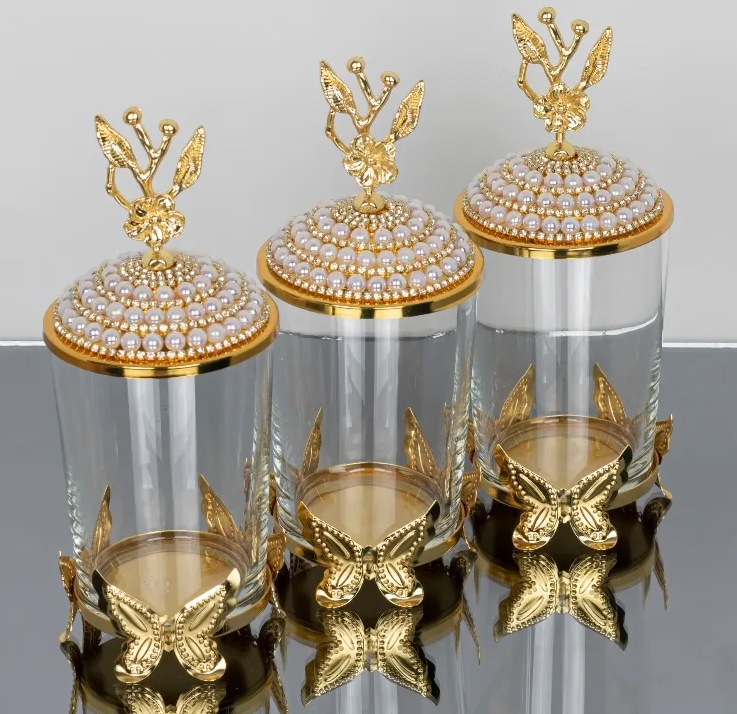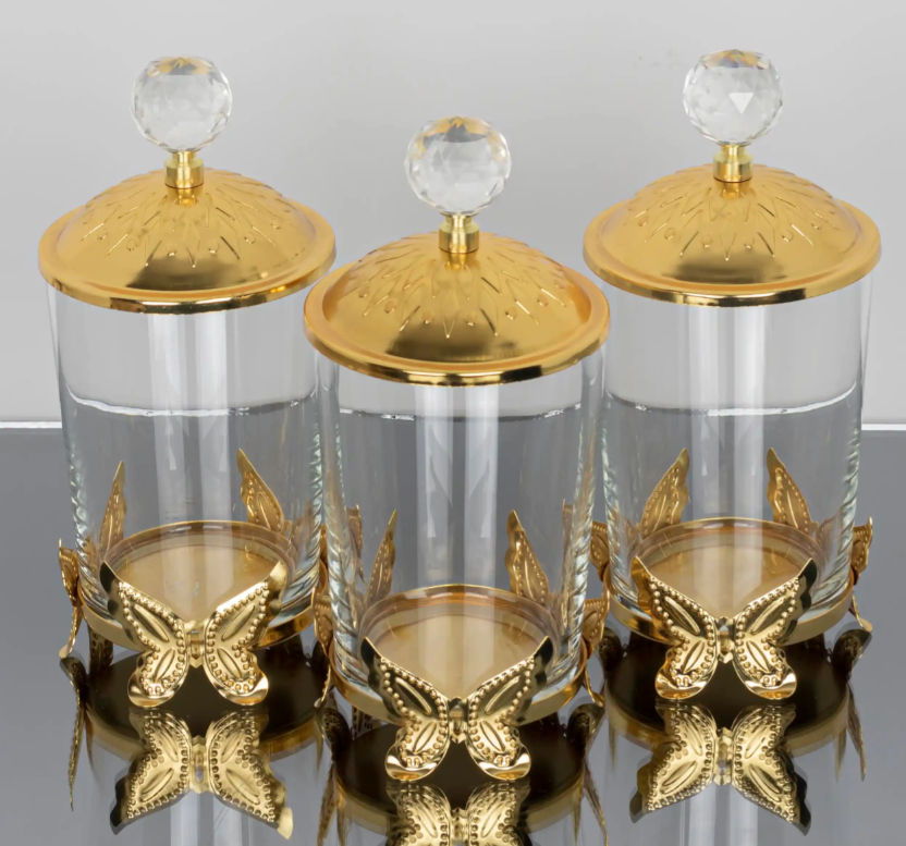 Gold Butterfly Sugar/Creamer Pearl Canister (Set of 3)