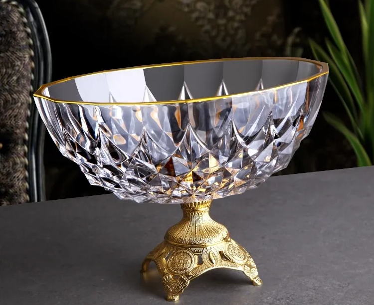 Gold Crystal Glass Footed Snack/Fruit Bowl