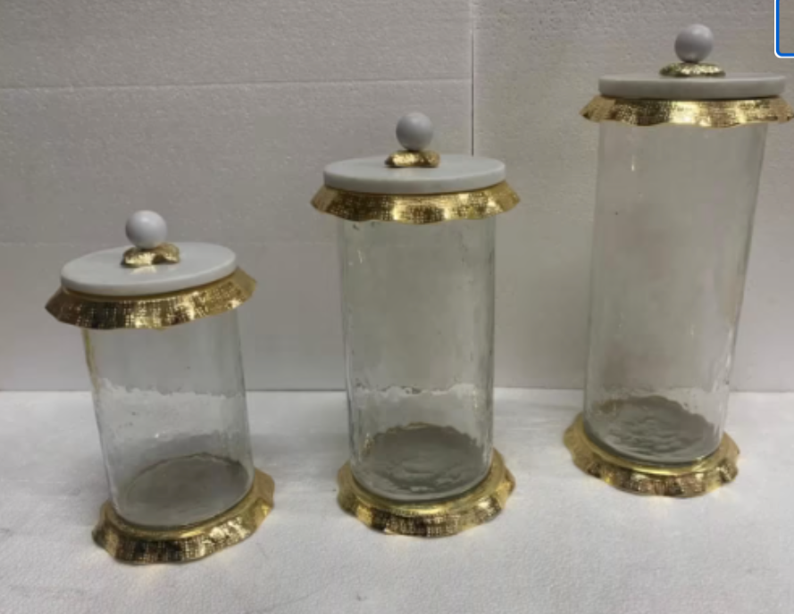 MARBLE & GOLD Ruffle CANISTERS SET of 3