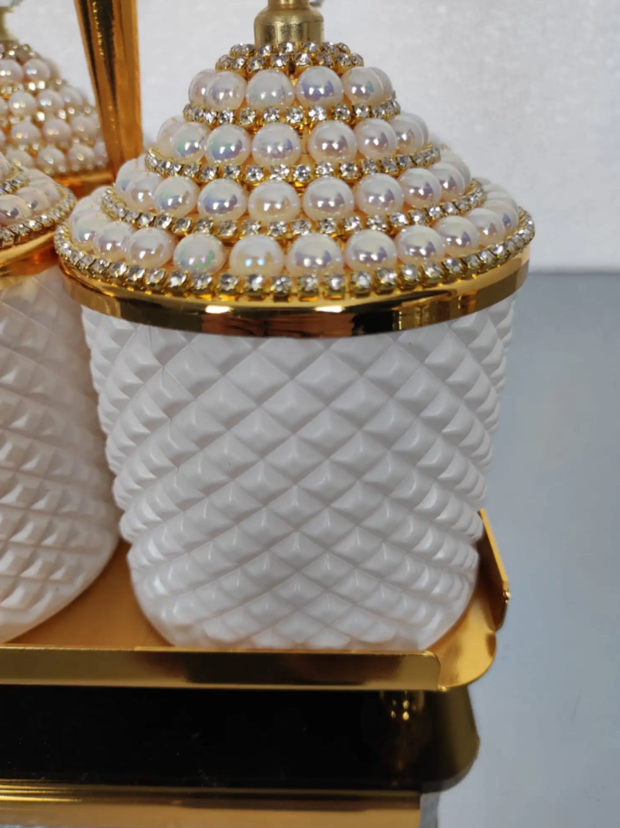 Gold and White Pearl 4 Pcs Spices Hammered Canister with Stand Set