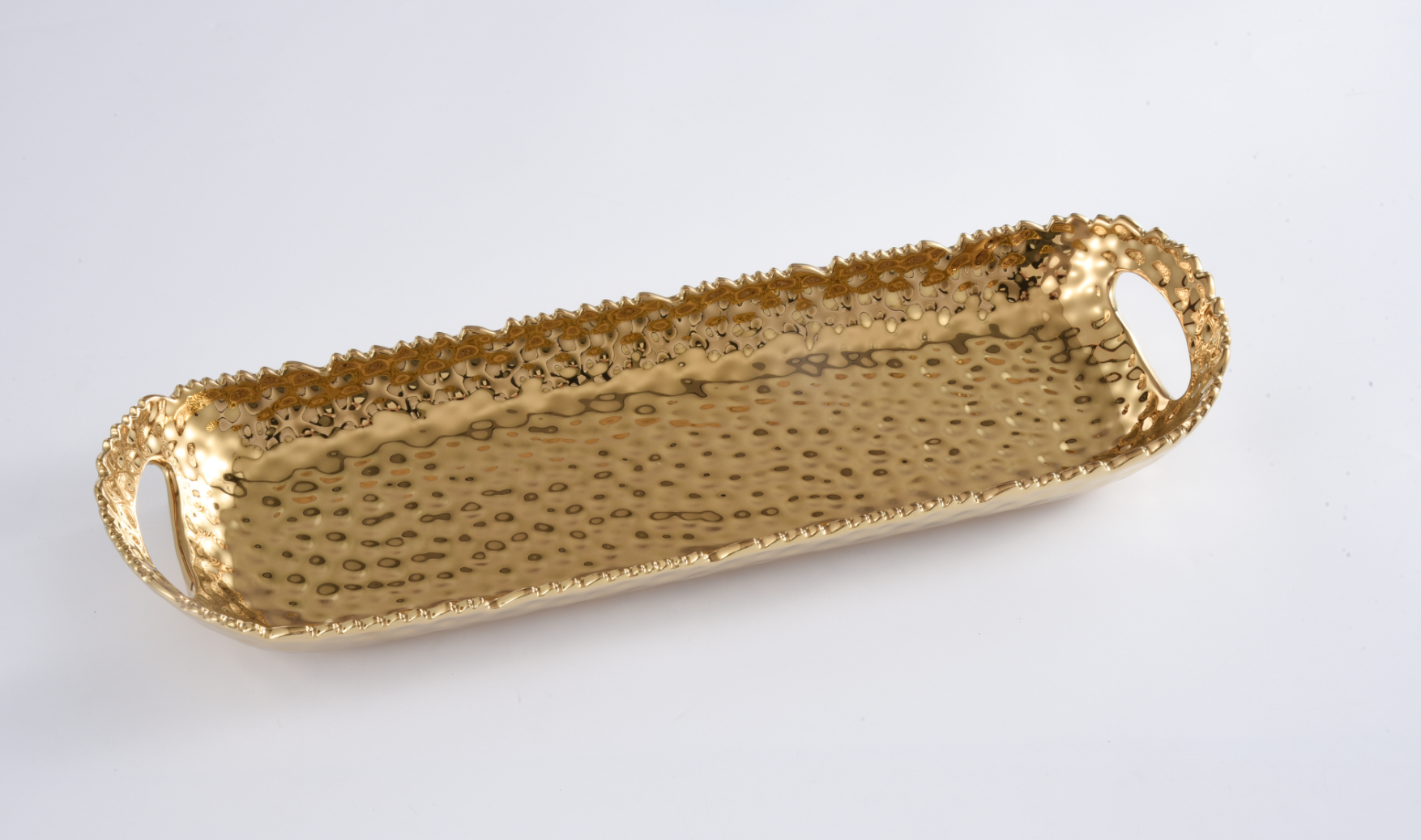 Description: This high-quality porcelain is a miracle material! It is food safe, dishwasher safe, and oven safe up to 350 degrees! Made in Argentina, this beautiful porcelain is also tarnish-free, scratch/stain resistant, will not lose its beautiful luster, and is perfect for everyday life! Baking and serving never looked so good! This hammered textured gold porcelain collection is a very cute addition to your kitchen! It can hold, snacks, dips, or sauces and is food safe! It ties back to our other porcelain and hammered decor seamlessly. Comes in 5 styles