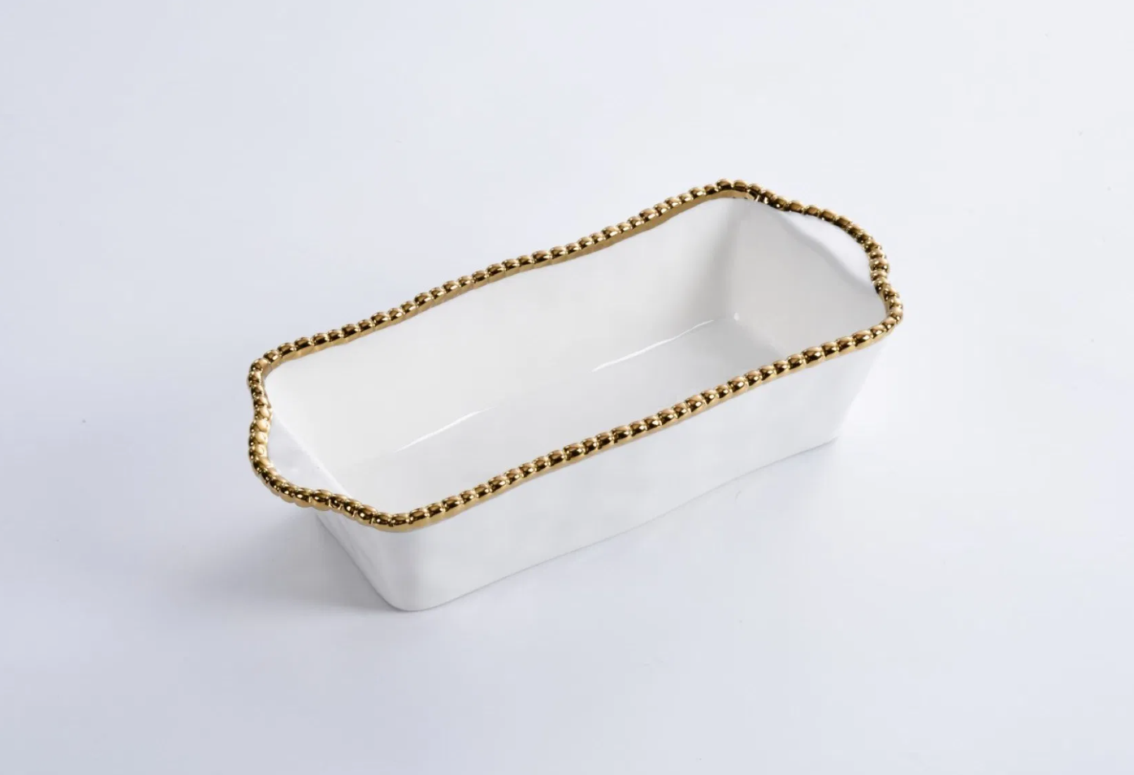 Gold and White Beaded Loaf Baking Dish
