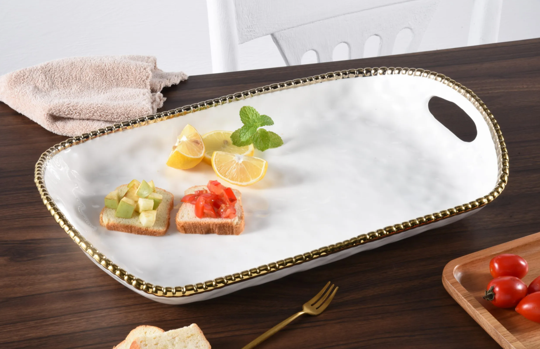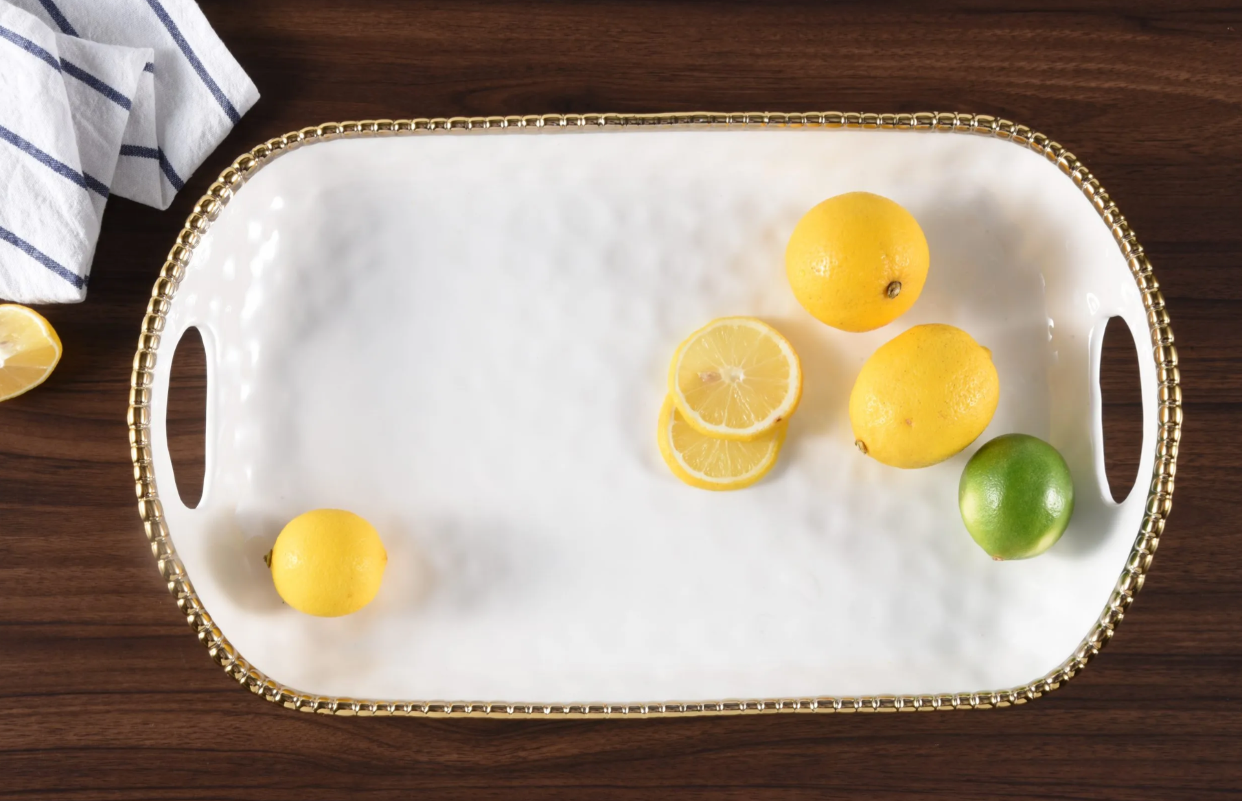 Gold and White Beaded Tray w/ Handle (Extra Large)