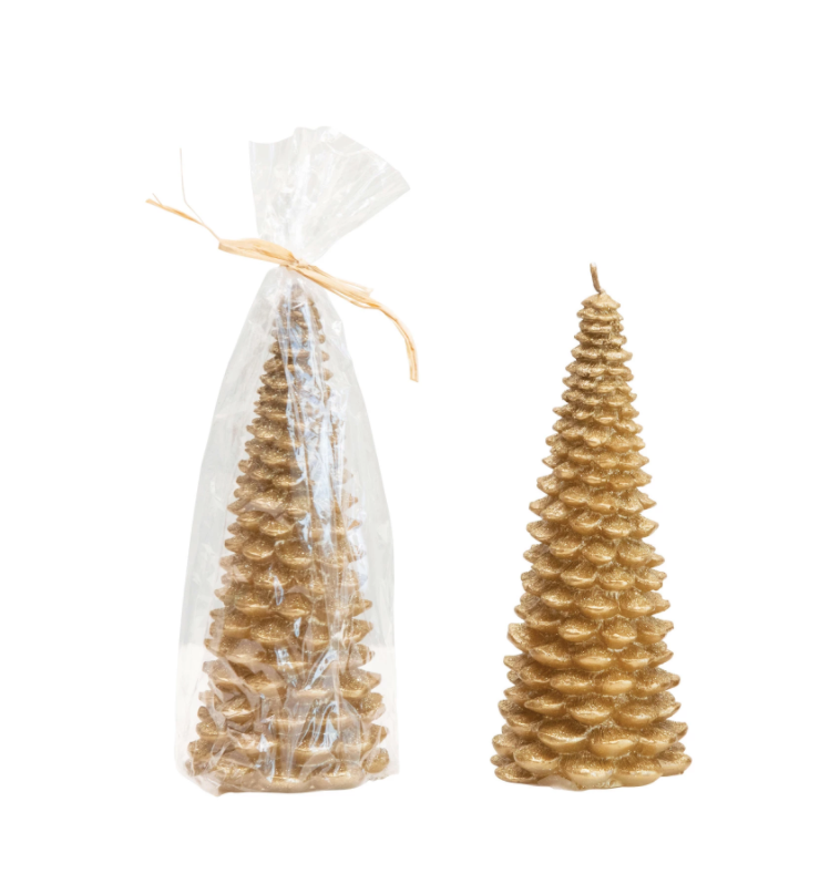 This candle is perfect for burning around the holidays. This candle is in the shape of a Christmas tree, and has a classic gold finish with silver beading. This candle is unscented, which is perfect for filling your house with the natural aroma of home cooked foods for the holidays