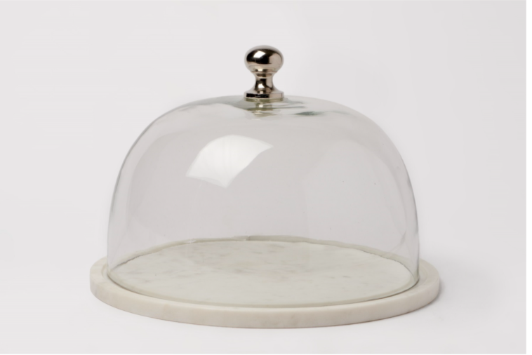 Marble and Glass Food Dome with Silver Knob (2 Sizes)