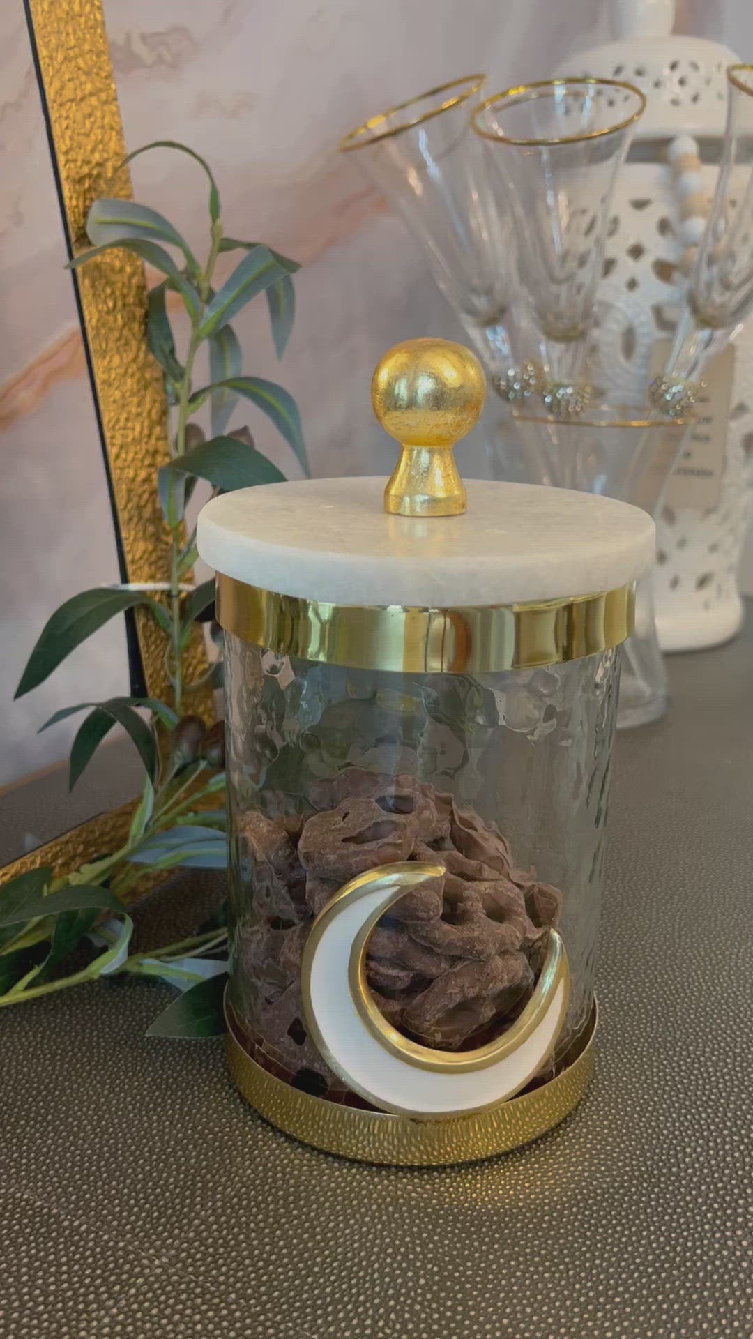 Marble and Gold Canister with Moon Detailed (Eid/Ramadan)