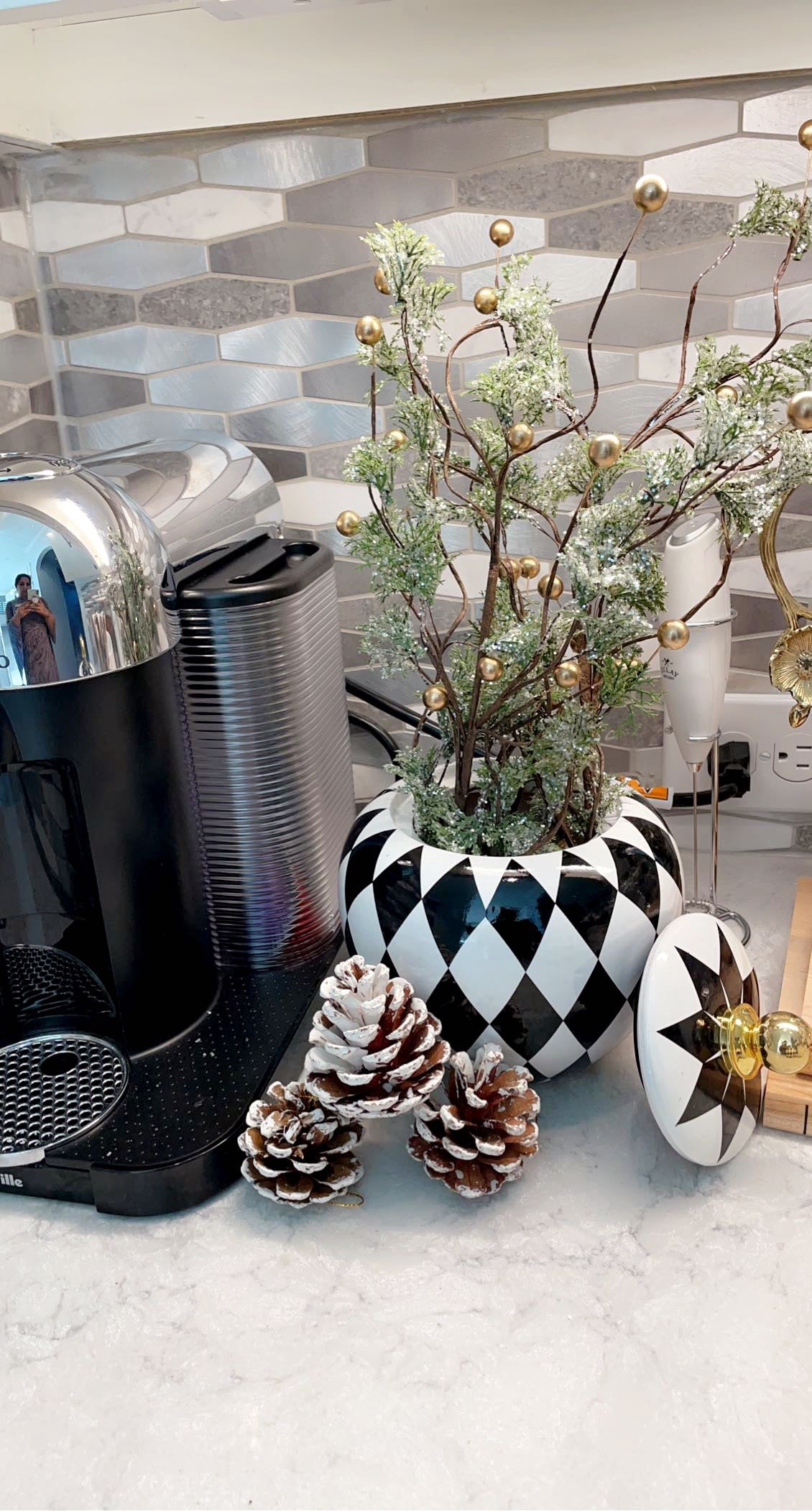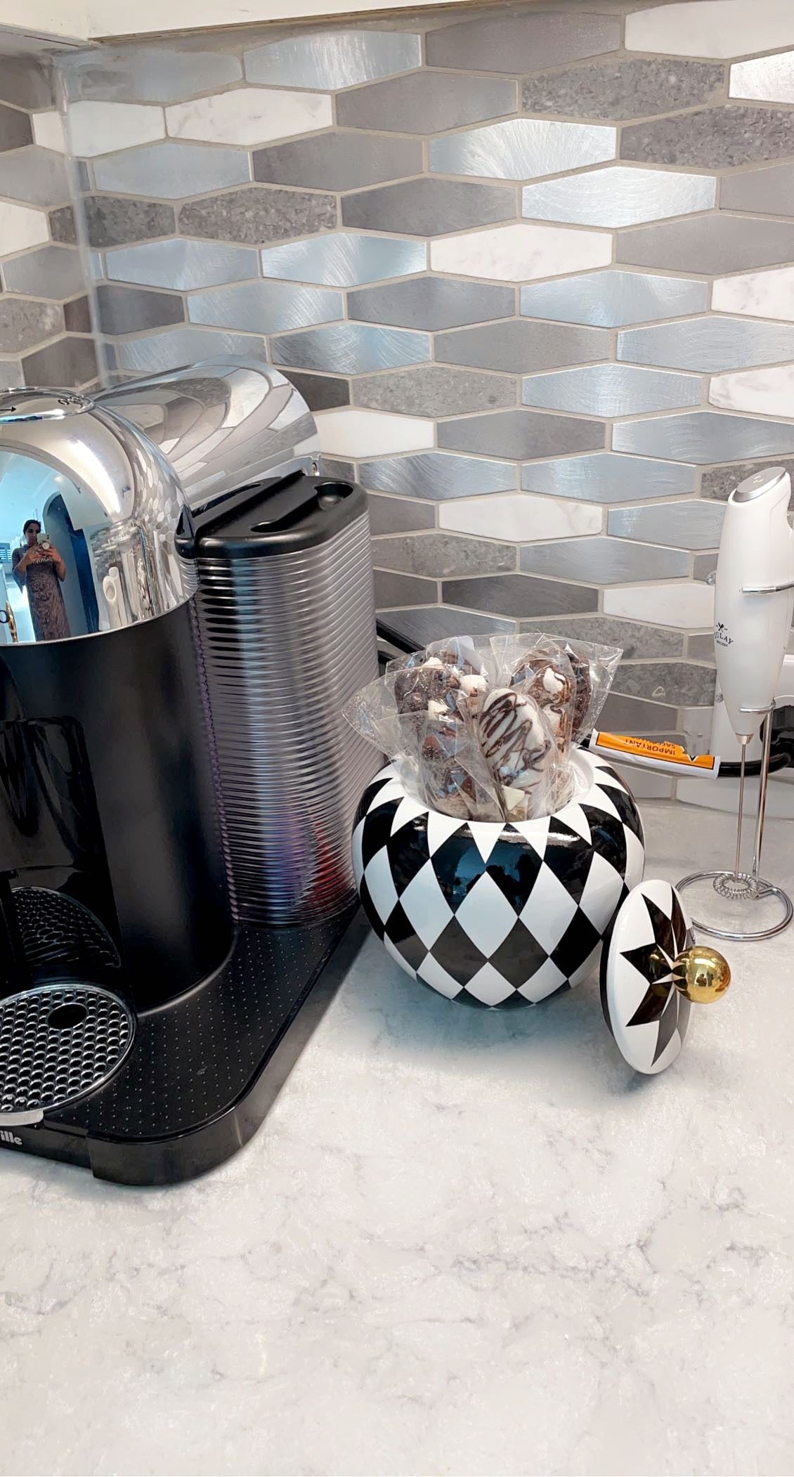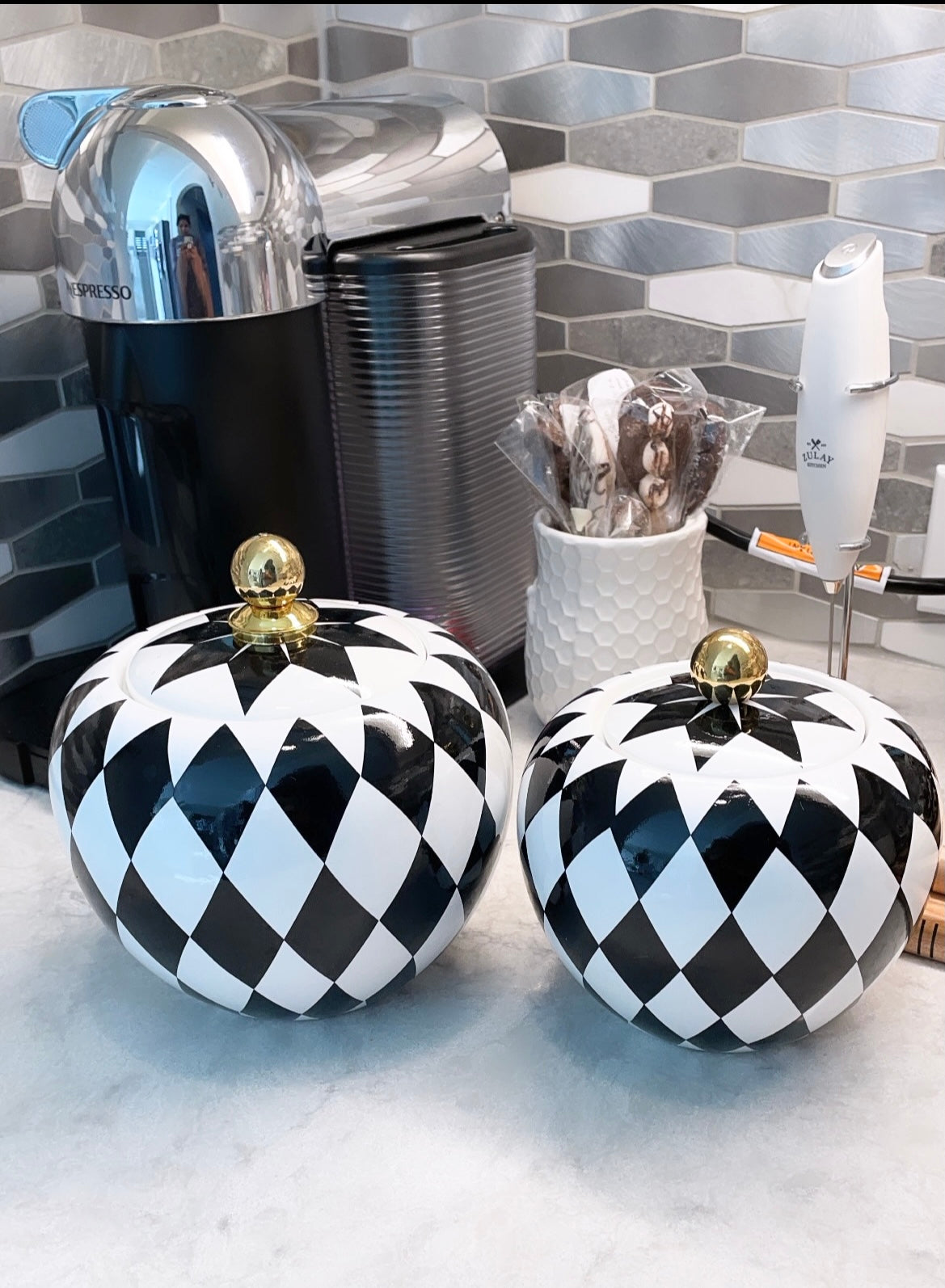 Set of 2 Black & White Checkered Jars